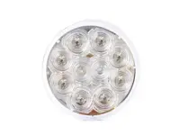 44 Series - 4 inch Round Sealed LED Stop / Tail / Turn lamps. Red in color. Clear Lens. 10 Super Flux Diodes. Sealed polycarbonate lens and housing. 12.8 Volts, .210/.090 Amps.
