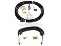 Sliding 5th wheel air hose major kit KP155KA for Holland, Kenworth and Volvo/White applications. 1/4 inch hose with 1/4"-14 NPTF fittings. Coiled black nylon air hose with spring guard. Cab switch to fifth wheel. Replaces Holland numbers RK250010A and RK-2500-10A.