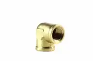 Yellow Brass Female 90 Degree Elbow pipe fitting. 3/8 inch threads.