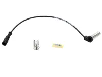 ABS brake sensor. Right angle, 12.0 inch cable length, black cannon type plug. Includes wiring with sensor lube and 2 half moon retainers. Replacement for Freightliner TDA R955335.