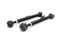 Rough Country adjustable rear upper control arms 11990 for the Jeep Grand Cherokee and Wrangler offer considerable range, strength, and safety for off-road applications. The upper arm joints pivot up to 20 degrees.