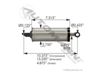 Replacement air cylinder KP2524R16LA for Holland FW31, FW33, FW35 series fifth wheel. 10.375 inch retracted length, 15.20 inch extended length, 4.875 inch stroke.