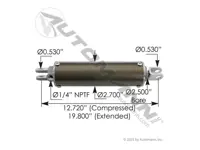 Replacement air cylinder KP2524R-V for Holland sliding fifth wheels. 12.72 inch retracted length, 19.80 inch extended length. 1/4 inch FTP port, 100 PSI operating pressure. Replaces OEM numbers XA-2524-R and XA2524R