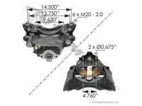 Air disc brake caliper 158.LRG729for Volvo truck and bus applications. ELSA 225 radial axle type, right hand. Replaces Volvo numbers 68033518M16 and 68033522M17.