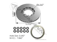 Air disc rotor 153.183923 for FF/FR axles with Bendix or Meritor disc brakes. 16.923 inch outer diameter. 10 bolt holes at 0.640 inch diameter. Replaces