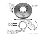 Air disc rotor 153.185621 for TN and TP axles. 16.930 inch outer diameter. 10 bolt holes at 0.656 inch diameter. Replaces Great Dane number CON10085621 and Freightliner number CM 10085621.