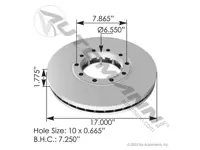Air disc rotor 153.10041218. 17.090 inch outer diameter. Includes ABS tone ring, 5 each 1/4 inch-20 Torx head screws, 10 each 5/8"-18 flange nuts.