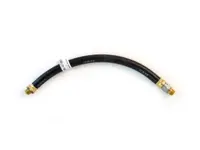 Sloan rubber air hose assembly 452118 is 18 inches long with a 1/2 inch inner diameter. The hose includes one fixed and one swivel 3/8"-18 brass fitting and meets SAE J1402 and DOT-106 certification. 225 psi maximum operating pressure. The permanent live swivel fitting retains the ability to swivel after installation.