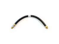 Sloan rubber air hose assembly 453220 is 20 inches long with a 3/8 inch inner diameter. The hose includes one fixed and one swivel 3/8"-18 brass fitting and meets SAE J1402 and DOT-106 certification. 225 psi maximum operating pressure. The permanent live swivel fitting retains the ability to swivel after installation.