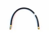 Sloan rubber air hose assembly 453228 is 28 inches long with a 3/8 inch inner diameter. The hose includes one fixed and one swivel 3/8"-18 brass fitting and meets SAE J1402 and DOT-106 certification. 225 psi maximum operating pressure. The permanent live swivel fitting retains the ability to swivel after installation.