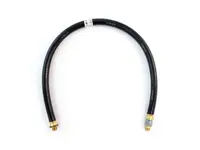 Sloan rubber air hose assembly 452136 is 36 inches long with a 1/2 inch inner diameter. The hose includes one fixed and one swivel 3/8"-18 brass fitting and meets SAE J1402 and DOT-106 certification. 225 psi maximum operating pressure. The permanent live swivel fitting retains the ability to swivel after installation.
