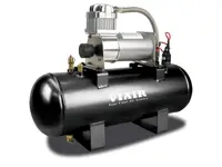 The 20005 Air Source Kit comes with a 280C VIAIR compressor mounted on a 2.0 gallon air tank with a pre-wired 90/120 PSI pressure switch . Kits comes with a drain cock, safety valve, compression fitting, and pressure switch pre-installed and wired.