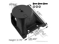 Air spring pedestal MHT5073R for Hendrickson AANT top mount, Ultraax-K, HKANT-40K, 46K, 69K23, 69K25, Ultraax-SP trailer applications. Bolt-on. 15.0 inch ride height, 3.17 inch height. Includes air spring pedestal, flange bolts and flanged lock nuts. Right hand application.