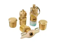 The five piece air tank fitting kit includes two plugs, a drain cock, compression fitting, and a 175 psi saftey valve. All 1/4 inch NPT