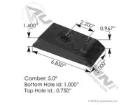 Axle seat MFL21 for Freightliner FAS II suspensions. 5 degree camber, wedged type, no wings. 3/4 inch top hole inner diameter, 1 inch bottom hole inner diameter. Replaces Freightliner numbers 6813281626 and 681-328-16-26.