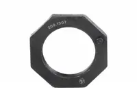 Axle spindle nut. Eight sides, 2-5/8 inch-16 thread, 3.813 inch outside diameter, 3/8 inch thickness. For Eaton, Kershaw, Meritor, Std. Forge 17,000 & 18,000 lbs. trade axles. Replaces Meritor 1227C549, 1227C549BULK, 1227-C-549-BULK, R000540 and T6880.
