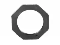 Axle spindle nut. Eight sides, 3-1/2 inch-12 thread, 4.840 inch outside diameter, 3/8 inch thickness. For Meritor TP axle, manual adjustment, Hendrickson INTRAAX HP series. Replaces Meritor 1227K1389 and 1227-K-1389.