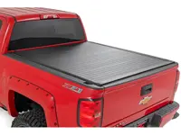 Rough Country hard roll-up truck bed cover 50214550 for the GM Silverado and Sierra 1500 is designed to keep your cargo secure, dry, and protected from the elements while enhancing your vehicle's sleek, low-profile appearance.