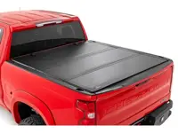 Rough Country hard tri-fold flip up truck bed cover is unlike traditional bed covers that limit access to your truck bed. The innovative Flip-up design grants you complete access to your truck bed, making it easier to load and unload large items.