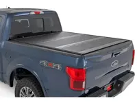 Rough Country tri-fold Tonneau truck bed covers provides a flush, low profile design that gives your truck a clean, sleek look while protecting the contents of your bed. The durable, aircraft grade aluminum cover features a premium, black textured finish for uncompromised protection and a great look.