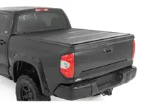 Rough Country tri-fold Tonneau truck bed covers provides a flush, low profile design that gives your truck a clean, sleek look while protecting the contents of your bed. The durable, aircraft grade aluminum cover features a premium, black textured finish for uncompromised protection and a great look.