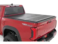 Rough Country tri-fold Tonneau truck bed covers provides a flush, low profile design that gives your truck a clean, sleek look while protecting the contents of your bed. The durable, aircraft grade aluminum cover features a premium, black textured finish for uncompromised protection and a great look.