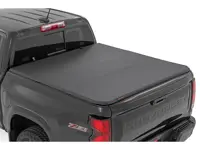 Rough Country soft tri-fold truck bed covers gives you a practical way to protect your truck bed with a sleek look that installs in seconds. The lightweight design requires no tools and is a snap to install. The cover will arrive completely assembled and ready to install. Simply line up and fasten the quick-clamp locks and you're ready roll in seconds.