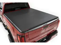 Rough Country soft tri-fold truck bed covers gives you a practical way to protect your truck bed with a sleek look that installs in seconds. The lightweight design requires no tools and is a snap to install. The cover will arrive completely assembled and ready to install. Simply line up and fasten the quick-clamp locks and you're ready roll in seconds.