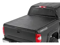 Rough Country soft tri-fold truck bed covers gives you a practical way to protect your truck bed with a sleek look that installs in seconds. The lightweight design requires no tools and is a snap to install. The cover will arrive completely assembled and ready to install. Simply line up and fasten the quick-clamp locks and you're ready roll in seconds.