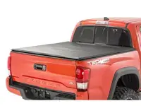 Rough Country soft tri-fold truck bed covers gives you a practical way to protect your truck bed with a sleek look that installs in seconds. The lightweight design requires no tools and is a snap to install. The cover will arrive completely assembled and ready to install. Simply line up and fasten the quick-clamp locks and you're ready roll in seconds.