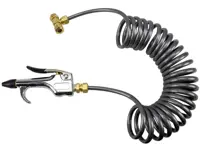 BlackJack Truckers Air Seat Blow Gun with 12 foot nylon hose. Coiled hose features a burst pressure up to 120 PSI that meets DOT standards and is SAE approved. Includes a 1/4-inch NTA air line Tee.