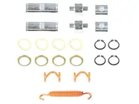 Brake hardware kit 100.4515.50 for Meritor 4515P cast brakes. For shoe 142.451585. Kit includes spring, roller, anchor pin bushings, lock rings, anchor pins, spring clips, felt retainers and anchor pin felt. Replaces Meritor number KIT9081.
