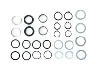 Camshaft repair kit 08-130600 for Meritor trailer axle, 12-1/4 inch Q Type and 16-1/2 inch 4000-6000 axle without support bracket, 1-5/8 inch diameter camshafts. The repair kit includes camshaft bushings, seals, camshaft lock, washers and lock ring. Replaces Meritor number KIT970.