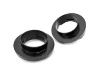 Rough Country 1.5 inch Leveling Coil Spacers 7599 for the 1999.2006 2WD Chevy Silverado and GMC Sierra 1500 pickup keeps your stock coil and factory ride quality while leveling out the front of your truck with the rear. Made of A36 Steel, this durable spacer kit is prepared to withstand the elements and the harshest of off-road hazards. The spacer kit allows enough ride height to run up to 32 inch tires.