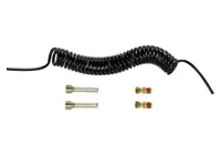 Black coiled air hose KP222 for fifth wheel slider applications. 6 feet long with fittings and springs. Replaces Tectran number 14210-72 and Sloan 451301.