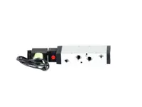 Single solenoid valve P2LBX592ESNDCH45, 2 position, 12VDC. 1/4 inch NPT ports. Spring return with locking override and 18" power leads. 12V DC operation with 145 PSI operating limit.