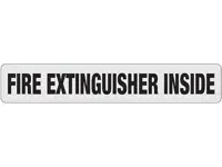 Fire Extinguisher Inside decal. Decal measures 2 inches x 12 inches in size. Features black lettering on a clear background.