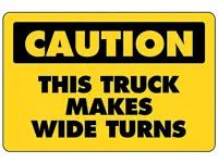 Caution This Truck Makes Wide Turns decal measures 11.75 inches x 17.25 inches in size.