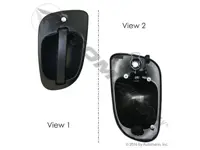 Exterior left hand door handle HLK1067 for Freightliner Cascadia, M2 106, M2 112, M2 Business Class trucks. Replaces OEM numbers A1841572000, A18-41572-000, A1847729000, A18-47729-000, A1847729002, A18-47729-002, A1853241000 and A18-53241-000. Black Color.
