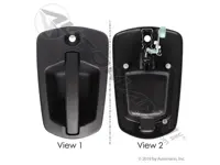Exterior left hand door handle HLK2882 for Freightliner Cascadia trucks. Replaces OEM numbers A18-67004-004 and A1867004004. Black color.