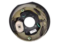 Electric trailer brake BRK-EB10LH for 3,500 lbs. axles, 10 x 2.25 inch drum. Fits left side, 13", 14", 14-1/2" and 15" wheels. Similar to 4701-L, BK-10E-01, 23-26, AKEBRK-35L. Manual adjust.
