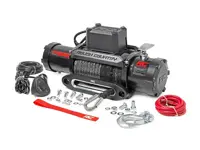 Rough Country Pro Series Electric Winch PRO9500S offers a high-powered, high-quality recovery solution for your vehicle. The rugged design features an IP67 waterproof and dustproof rating and 85 foot x 3/8 inch synthetic rope. The series wound motor is extremely efficient at higher speeds and less prone to overheating compared to permanent magnet motors. 3-stage planetary gear train boasting a 265:1 gear ratio allows enormous torque in a small housing. Includes a replaceable clevis hook.