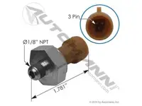Engine oil sensor 577.55613 for International DT466E, HT530 & I530E, 30/36/3800, 43/44/47/48/4900, 50/55i/5600i, 73-7500, Amtran RE, CE200/300. Level and temp sensor. 3 pin plug, 1.78 inch length, 1/8 inch NPT.