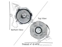 Aluminum fuel cap 572.1011. Vented, non-locking, 4.00 inch, 8 NPSF threads. For International 9200, 9400, 9600, 9900 trucks. Replaces OEM number 508010C91.