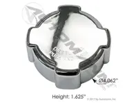 Chrome fuel cap cover 562.1016C. Fits Freightliner fuel caps 572.1016, 572.1019 and 572.1023.