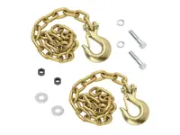 The Reese Goose Box Safety Chain kit contains 2 grade 70 5/16 inch X 44 inch chains with 5/16 inch clevis hooks. Includes mounting hardware. 16,000 lbs. capacity, yellow zinc finish.