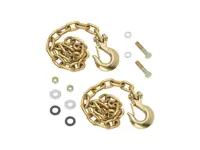 The Reese Goose Box Accessory Safety Chain Kit contains 2 grade 70, 3/8" x 44" chains with 5/16 inch Clevis Hooks with mounting hardware. 20,000 lbs. capacity, yellow zinc finish.