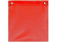Red Jersey Grommet Safety Flag is 18 x 18 inches in size. Double stitched with reinforced hem and two #5 toothed grommets for easy installation. Fray resistant knit polyester material.