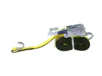 Ratchet strap assembly 573.A230JH has wire J-hooks at each end and is 2 inches wide and 30 feet long. The long wide handle provides easy control of the ratchet. The strap has a 10,000 lbs. rated capacity and 3,335lbs W.L.L. Yellow color.