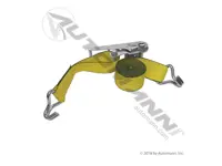 Ratchet strap assembly 573.C430JH has wire J-hooks at each end and is 4 inches wide and 30 feet long. The long wide handle provides easy control of the ratchet. The strap has a 16,200 lbs. rated capacity and 5,400 lbs. W.L.L. Yellow color.